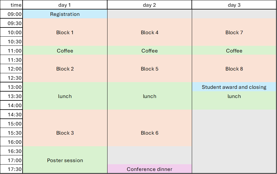 - Invited talks: 25 minutes (20 minutes + discussion)